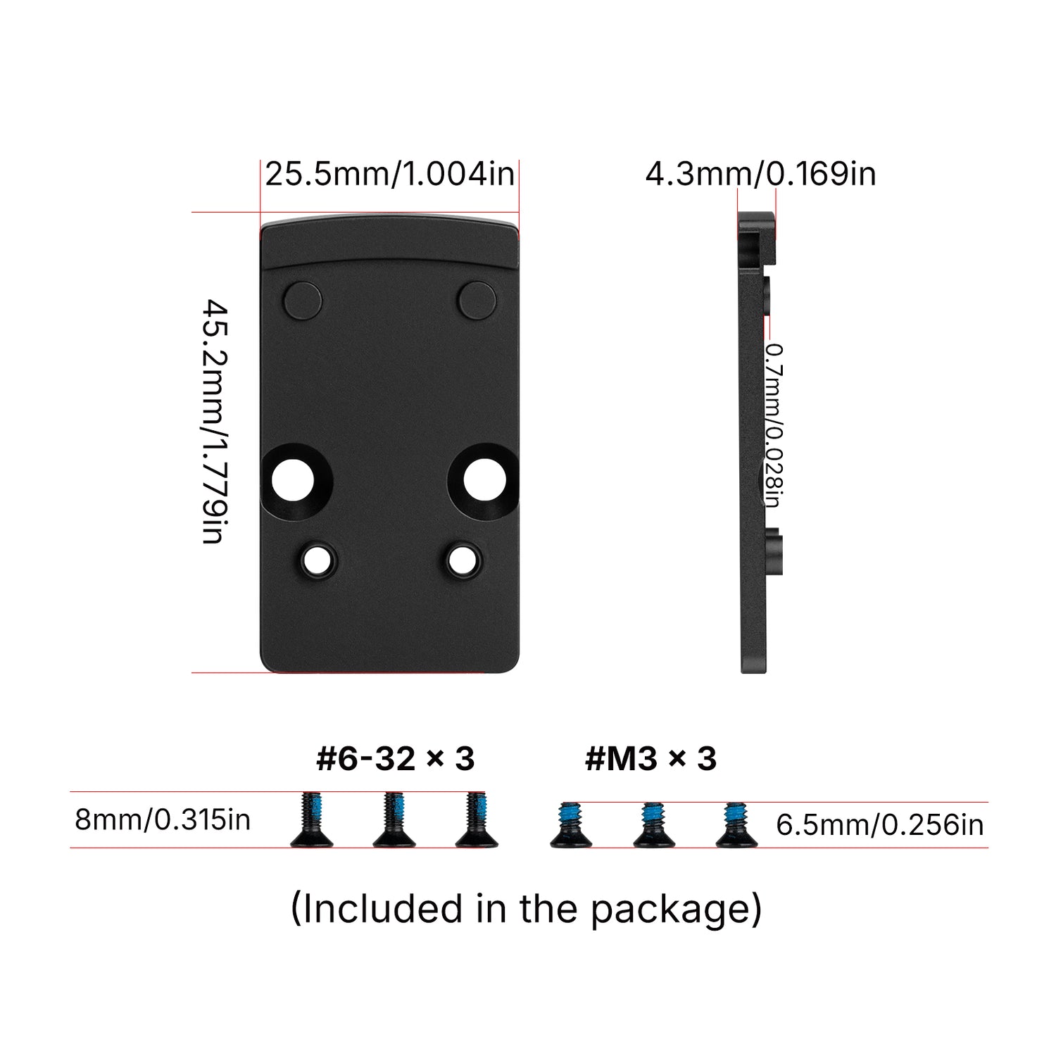 • Universaalne ühilduvus: Ühildub RMSc ja K-jalajälje punatäppsihtimisseadmetega.